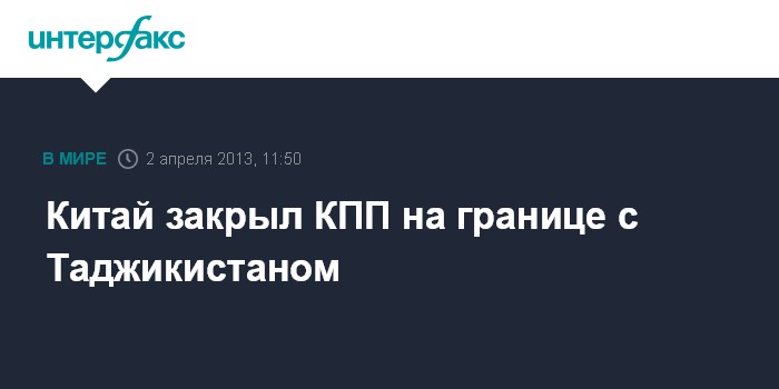 Душанбе. 2 апреля. INTERFAX.RU - Власти КНР временно закрыли контрольно-пропускной пункт на границе с Таджикистаном, сообщил "Интерфаксу" во вторник представитель Главного погрануправления (ГПУ) Госкомитета нацбезопасности Таджикистана.