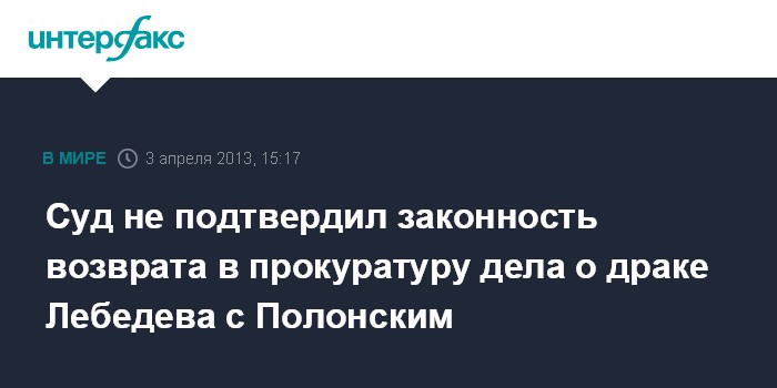 Суд не подтвердил законность возврата в прокуратуру дела о драке Лебедева с Полонским