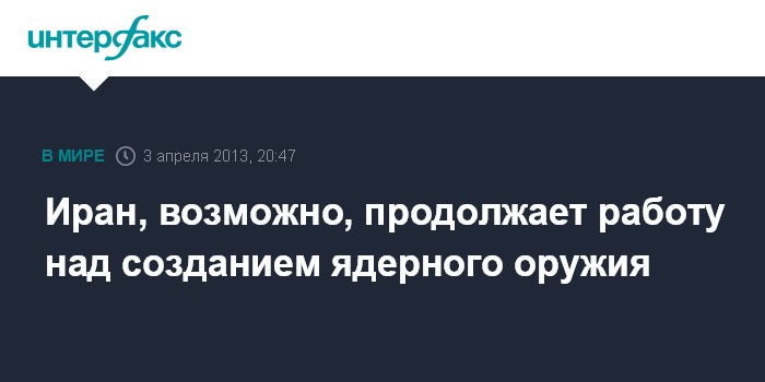 Вена. 3 апреля. INTERFAX.RU - Международное агентство по атомной энергии (МАГАТЭ) обеспокоено тем, что Иран может тайно продолжать работу над созданием ядерного оружия, заявил глава организации Юкия Амано в интервью агентству Associated Press.