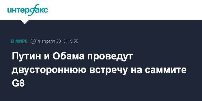 Москва. 4 апреля. INTERFAX.RU - Президент РФ Владимир Путин и президент США Барак Обама проведут полномасштабную встречу в ходе саммита "Большой восьмерки" в Северной Ирландии.