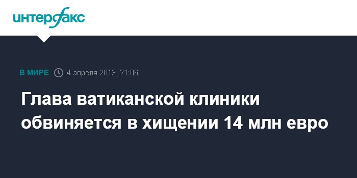 Глава ватиканской клиники обвиняется в хищении 14 млн евро