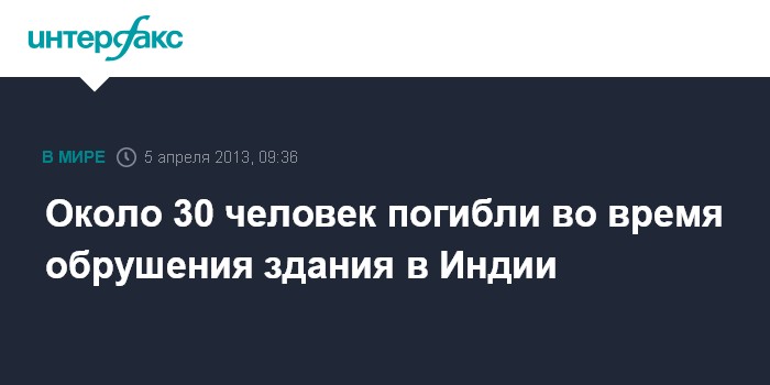Дели. 5 апреля. INTERFAX.RU - По меньшей мере, 27 человек погибли в результате обрушения семиэтажного здания в предместье города Мумбаи (Бомбея), сообщило в пятницу местное издание The Hindu. Среди погибших - девять детей, семь женщин и 11 мужчин, отмечает издание со ссылкой на данные полиции. По некоторым данным, получили травмы 64 человека.