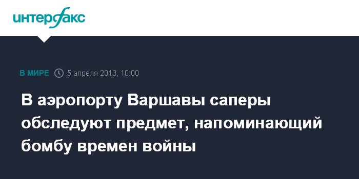 Варшава. 5 апреля. INTERFAX.RU - Саперные работы проводятся с утра пятницы в аэропорту имени Фредерика Шопена в Варшаве, сообщает польский телеканал TVN24.