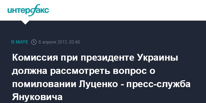 Комиссия при президенте Украины должна рассмотреть вопрос о помиловании Луценко - пресс-служба Януковича