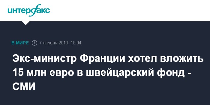 Экс-министр Франции хотел вложить 15 млн евро в швейцарский фонд - СМИ
