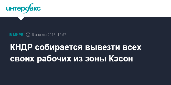 Сеул. 8 апреля. INTERFAX.RU - Пхеньян собирается вывезти всех северокорейских рабочих из совместной с Южной Кореей промышленной зоны Кэсон, говорится в сообщении, распространенном по каналам ЦТАК в понедельник.
