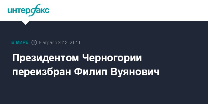Белград. 8 апреля. INTERFAX.RU - Уходящий президент Черногории Филипп Вуянович переизбран на этом посту, сообщила в понедельник Избирательная комиссия Черногории.