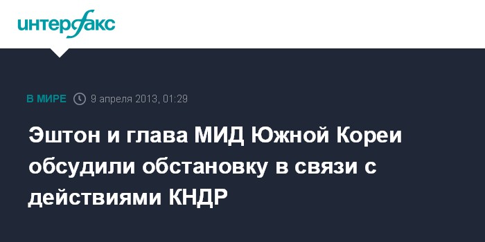 Эштон и глава МИД Южной Кореи обсудили обстановку в связи с действиями КНДР