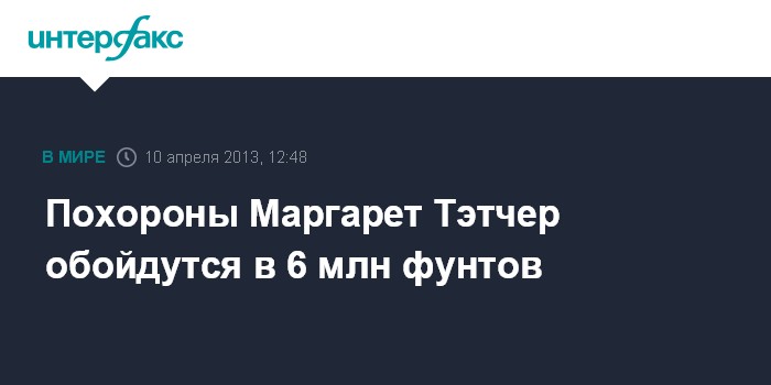 Похороны Маргарет Тэтчер обойдутся в 6 млн фунтов