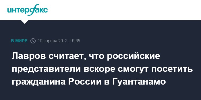 Лондон. 10 апреля. INTERFAX.RU - Российская сторона рассчитывает в ближайшее время получить доступ к российскому гражданину, который находится в Гуантанамо.