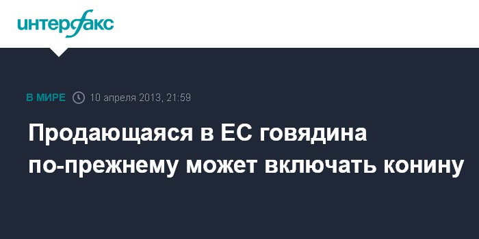 Брюссель. 10 апреля. INTERFAX.RU - Власти Нидерландов предупредили в среду, что 50 тыс. тонн говядины, проданной в разных странах Европы, могут частично оказаться кониной.