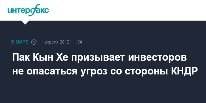 Сеул. 11 апреля. INTERFAX.RU - Президент Южной Кореи Пак Кын Хе заверила в четверг иностранных инвесторов в том, что они могут совершенно безопасно вести бизнес в стране, несмотря на угрозы со стороны КНДР, передают сеульские СМИ.
