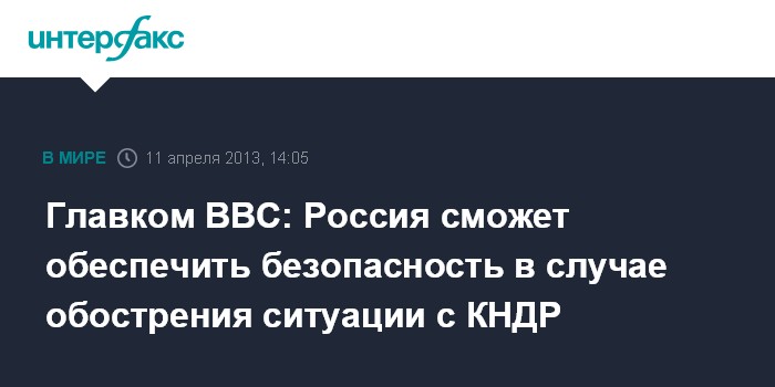 Москва. 11 апреля. ИНТЕРФАКС-АВН - Россия располагает достаточной группировкой боевой авиации на Дальнем Востоке для обеспечения безопасности восточных границ в случае обострения ситуации с КНДР, считает главком ВВС России генерал-лейтенант Виктор Бондарев.
