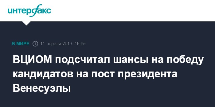 Москва. 11 апреля. INTERFAX.RU - Шансы на победу двух главных претендентов на пост президента Венесуэлы в настоящее время практически равны, утверждают социологи.