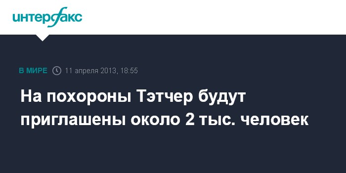 Как сообщалось, похороны Тэтчер состоятся 17 апреля в Соборе святого Павла в Лондоне.