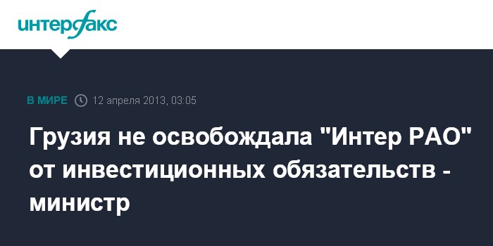 Грузия не освобождала "Интер РАО" от инвестиционных обязательств - министр
