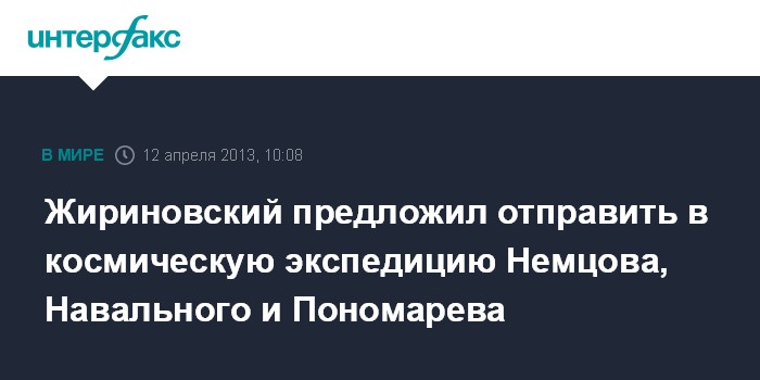 Жириновский также предложил в честь Дня космонавтики отправить "на космическом транспорте Немцова, Удальцова, Навального шалить на другую планету".