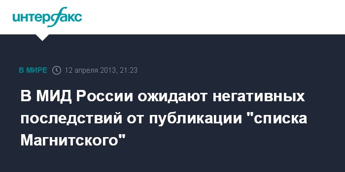 В МИД России ожидают негативных последствий от публикации "списка Магнитского"