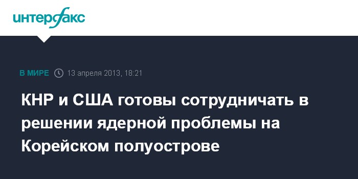 КНР и США готовы сотрудничать в решении ядерной проблемы на Корейском полуострове