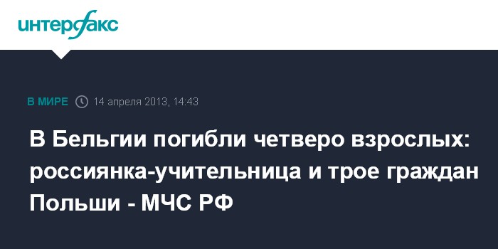 В Бельгии погибли четверо взрослых: россиянка-учительница и трое граждан Польши - МЧС РФ
