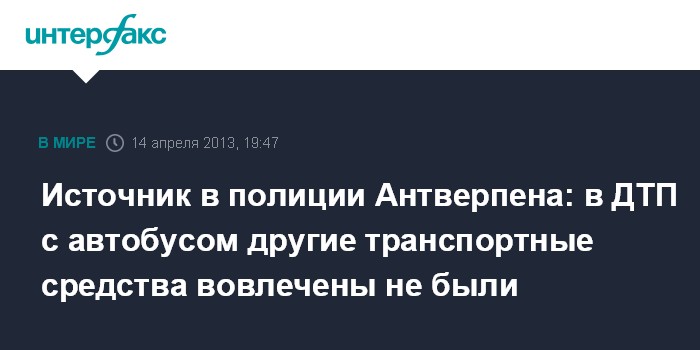 Источник в полиции Антверпена: в ДТП с автобусом другие транспортные средства вовлечены не были