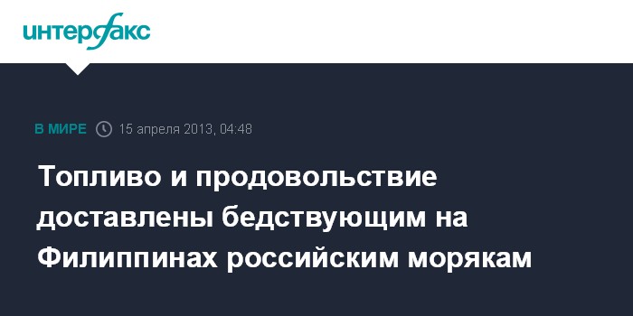 Топливо и продовольствие доставлены бедствующим на Филиппинах российским морякам