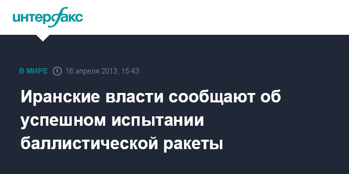 Тегеран. 16 апреля. INTERFAX.RU - Иранские военные успешно провели испытание баллистической ракеты средней дальности, сообщает во вторник местное телевидение