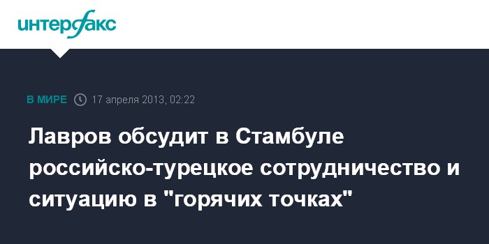 Лавров обсудит в Стамбуле российско-турецкое сотрудничество и ситуацию в "горячих точках"