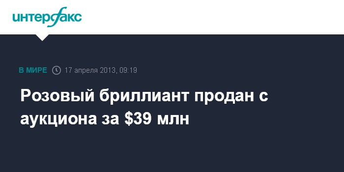 17 апреля. INTERFAX.RU - Один из самых крупных розовых бриллиантов в мире - Princie - был продан на аукционе Christie's в Нью-Йорке за $39 млн, сообщила BBC. Вопреки ожиданиям экспертов, рекорд цены, когда-либо заплаченной на аукционе за розовый бриллиант, не был побит.