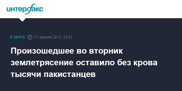 Произошедшее во вторник землетрясение оставило без крова тысячи пакистанцев