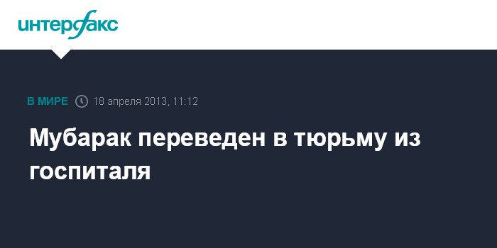 Каир. 18 апреля. INTERFAX.RU - Экс-президента Египта Хосни Мубарака в четверг перевели из госпиталя в тюрьму "Тора" под Каиром, сообщает местное агентство МЕНА.
