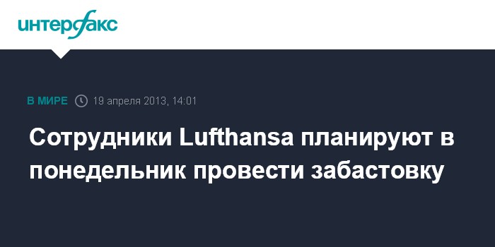 Берлин. 19 апреля. INTERFAX.RU - Германский профсоюз "Верди" призывал 33 тыс. сотрудников авиакомпании Lufthansa провести в понедельник забастовку в аэропортах Германии, говорится в сообщении профсоюза, опубликованном на его сайте в пятницу.