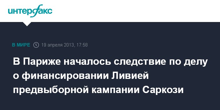 Прокуратура приняла соответствующее решение после того, как французский бизнесмен ливанского происхождения Зиад Такиеддин в декабре 2012 г. заявил, что у него есть доказательства, свидетельствующие о финансировании ливийскими властями кампании Саркози.