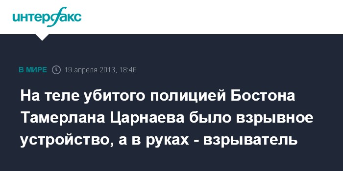 На теле убитого полицией Бостона Тамерлана Царнаева было взрывное устройство, а в руках - взрыватель