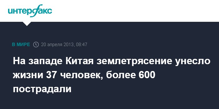 Лондон. 20 апреля. ИНТЕРФАКС - Как минимум 37 человек погибли и более 600 пострадали в результате мощного землетрясения в провинции Сычуань на западе Китая, сообщает британская телерадиовещательная корпорация Би-би-си в субботу.