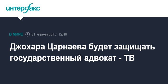 Вашингтон. 21 апреля. INTERFAX.RU - Подозреваемого в теракте в Бостоне Джохара Царнаева, судя по всему, будет защищать предоставляемый государством адвокат, сообщает в воскресенье телеканал Си-Би-Эс.