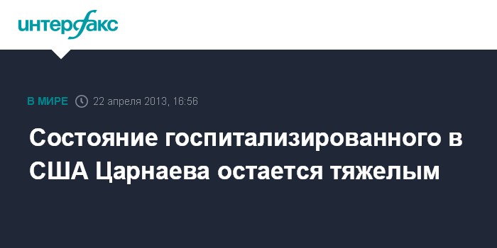 Состояние госпитализированного в США Царнаева остается тяжелым