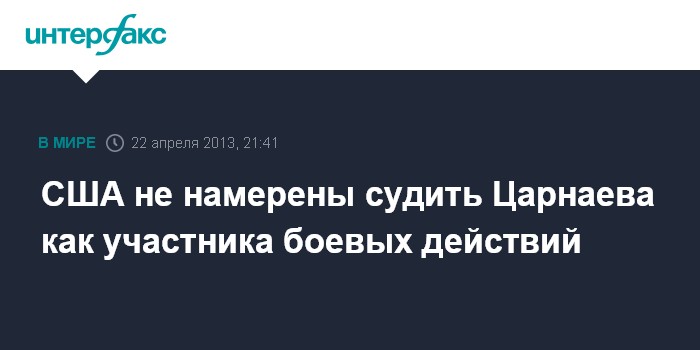 Вашингтон. 22 апреля. INTERFAX.RU - Власти США решили не присваивать подозреваемому в организации теракта на бостонском марафоне Джохару Царнаеву статус участника боевых действий, сообщил в понедельник официальный представитель Белого дома Джей Карни.