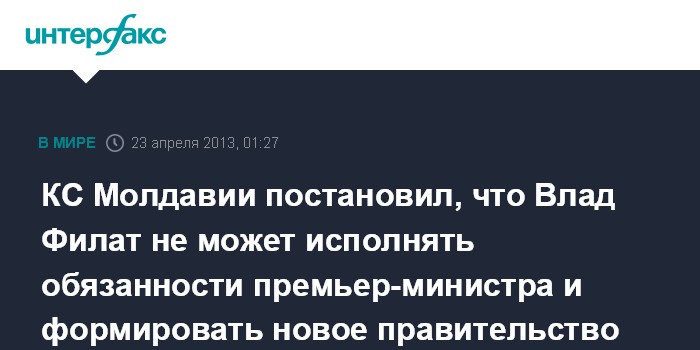 Кишинев. 23 апреля. ИНТЕРФАКС - Конституционный суд Молдавии вынес в понедельник вечером решение, что Влад Филат не может исполнять обязанности премьер-министра и формировать новое правительство.