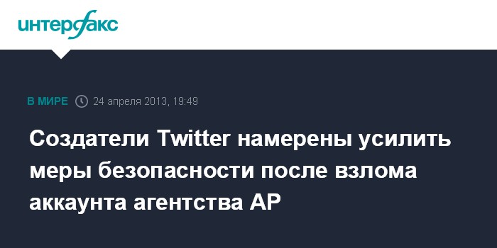 Как сообщалось, во вторник неизвестные взломали во вторник Твиттер-аккаунт информационного агентства AP и разместили на нем не соответствовавшее действительности сообщение о взрывах в Белом доме.