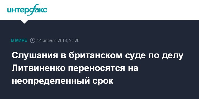 Лондон. 24 апреля. INTERFAX.RU - Предварительные слушания по делу о предполагаемом отравлении бывшего офицера ФСБ Александра Литвиненко в Лондоне перенесены на более поздний срок, сообщает сайт, посвященный дознанию по этому делу.