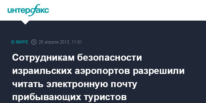 Иерусалим. 25 апреля. INTERFAX.RU - Генпрокурор Израиля Йехуда Вайнштейн подтвердил, что сотрудникам безопасности аэропортов Израиля официально разрешается требовать у приезжающих туристов доступ к их электронной почте и депортировать их в случае отказа.