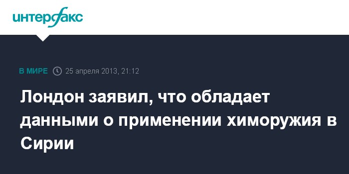 Лондон. 25 апреля. INTERFAX.RU - Власти Великобритании обладают некоторыми данными, указывающими на то, что в ходе сирийского конфликта действительно могло быть применено химоружие, сообщили в четверг в британском МИД.