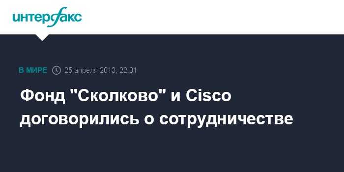 Фонд "Сколково" и Cisco договорились о сотрудничестве