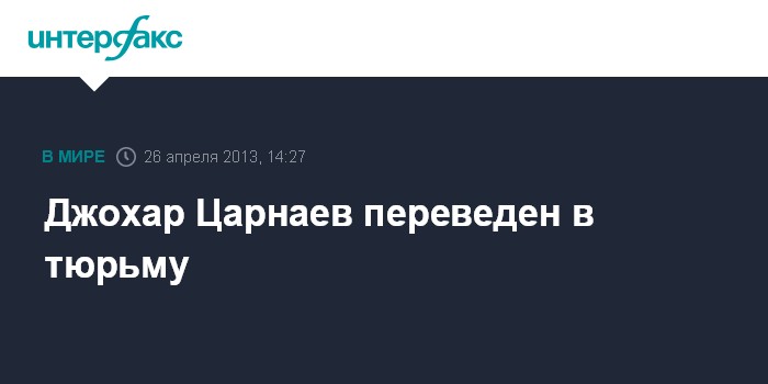 Вашингтон. 26 апреля. INTERFAX.RU - Обвиняемый в совершении теракта на бостонском марафоне Джохар Царнаев переведен из больницы в тюрьму, сообщили в пятницу в Службе федеральных маршалов США.