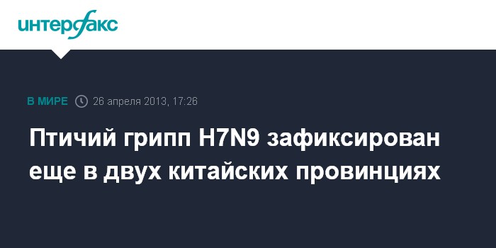 Пекин. 26 апреля. INTERFAX.RU - Власти КНР в пятницу подтвердили случаи заболевания птичьим гриппом H7N9 в провинциях Цзянси и Фуцзянь на востоке страны, передают местные СМИ.