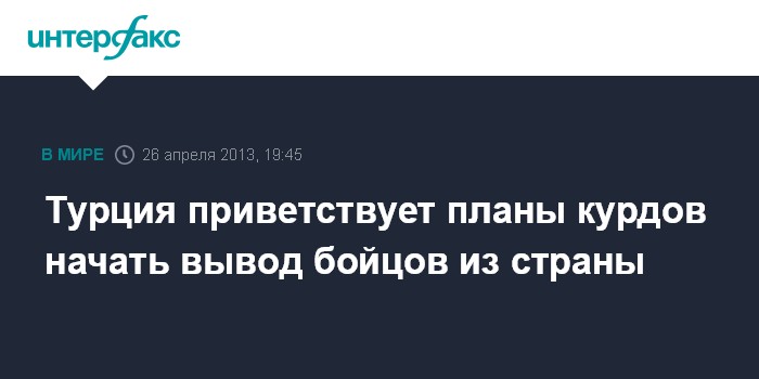 Стамбул. 26 апреля. INTERFAX.RU - Правительство Турции выразило удовлетворение в связи с заявлением Рабочей партии Курдистана (РПК) о начале вывода бойцов с территории Турции на север Ирака 8 мая, сообщил в пятницу вице-премьер Бюлент Аринч.