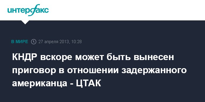 КНДР вскоре может быть вынесен приговор в отношении задержанного американца - ЦТАК