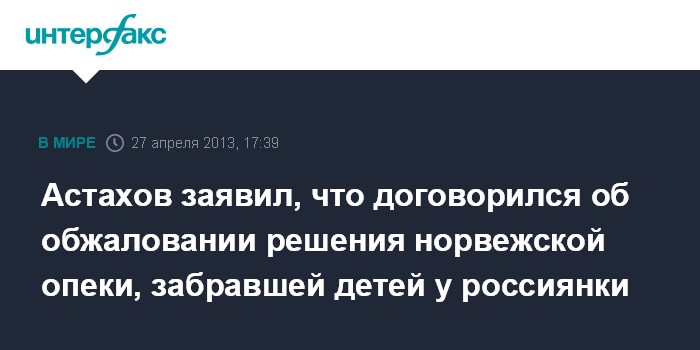 Астахов заявил, что договорился об обжаловании решения норвежской опеки, забравшей детей у россиянки