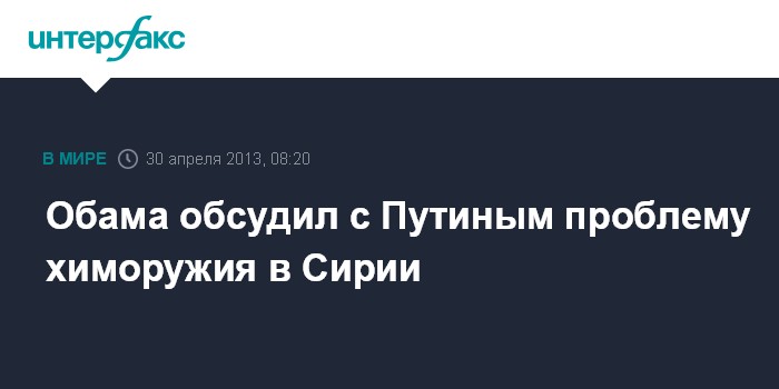 Лондон. 30 апреля. INTERFAX.RU - Президент США Барак Обама в телефонном разговоре со своим российским коллегой Владимиром Путиным выразил обеспокоенность по поводу возможного использования химического оружия в Сирии.